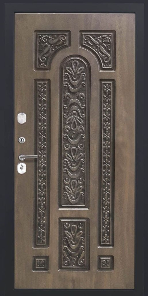 Дизайнерская входная Входная дверь ДвериПРО L-45 Д-19 (16мм, Грецкий орех + черная патина винорит) DPRO194044 класса Люкс с несколькими листами стали, звукоизоляцией и теплоизоляцией. Утепленный короб и полотно защитят от сквозняков и шумов. Модель не только надежная, комфортная, защищенная и высочайшего качества, но и очень красивая! Будет отлично сочетаться с интерьером дома, квартиры или офиса. Сейчас действует выгодное предложение по цене: 80 149 руб.