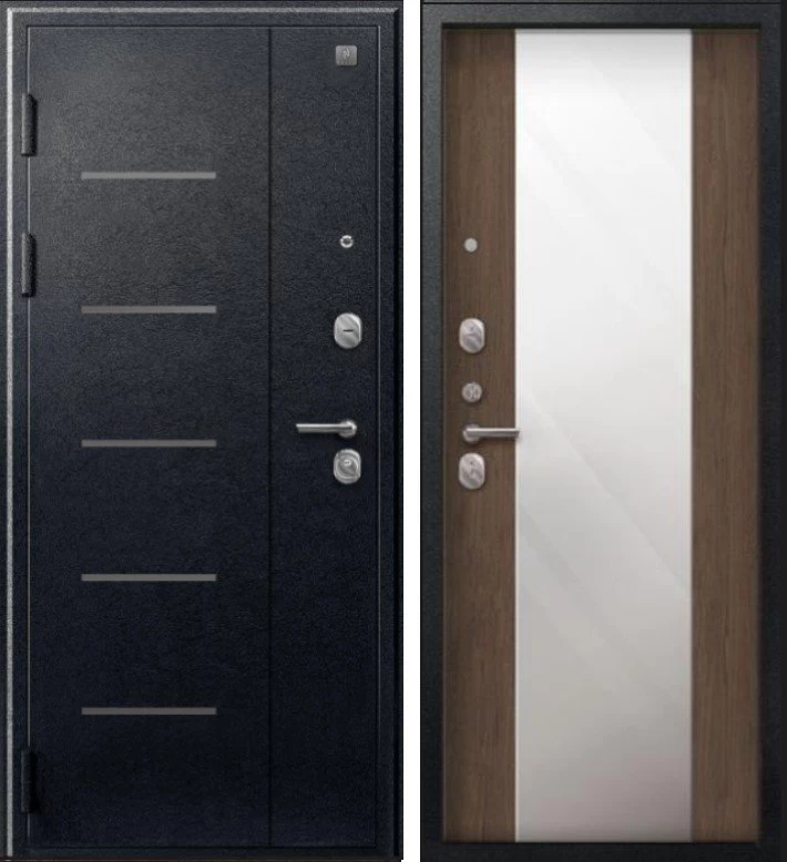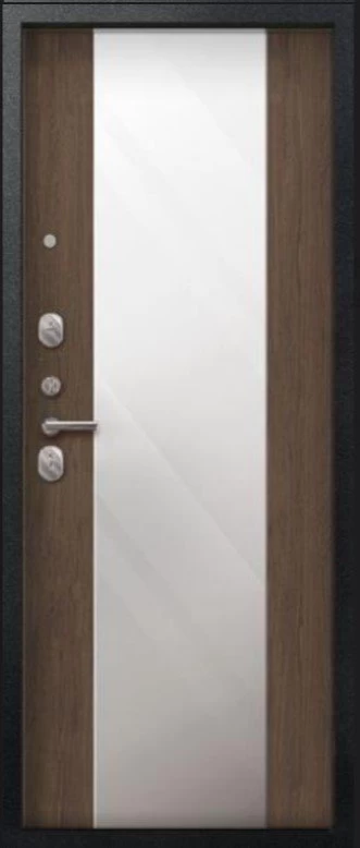 Надежная входная Дверь V-04 Черный муар - Миндаль Зеркало премиум класса по цене 42 299 руб. Большая толщина стали защитит от проникновения в ваш дом, квартиру или коттедж. Используется очень качественная фурнитура: замки, цилиндры, ручки, защелки. Покрытие и отделка двери изготовлено под внимательным контролем производителя. Дверь имеет долгий срок службы и гарантию.